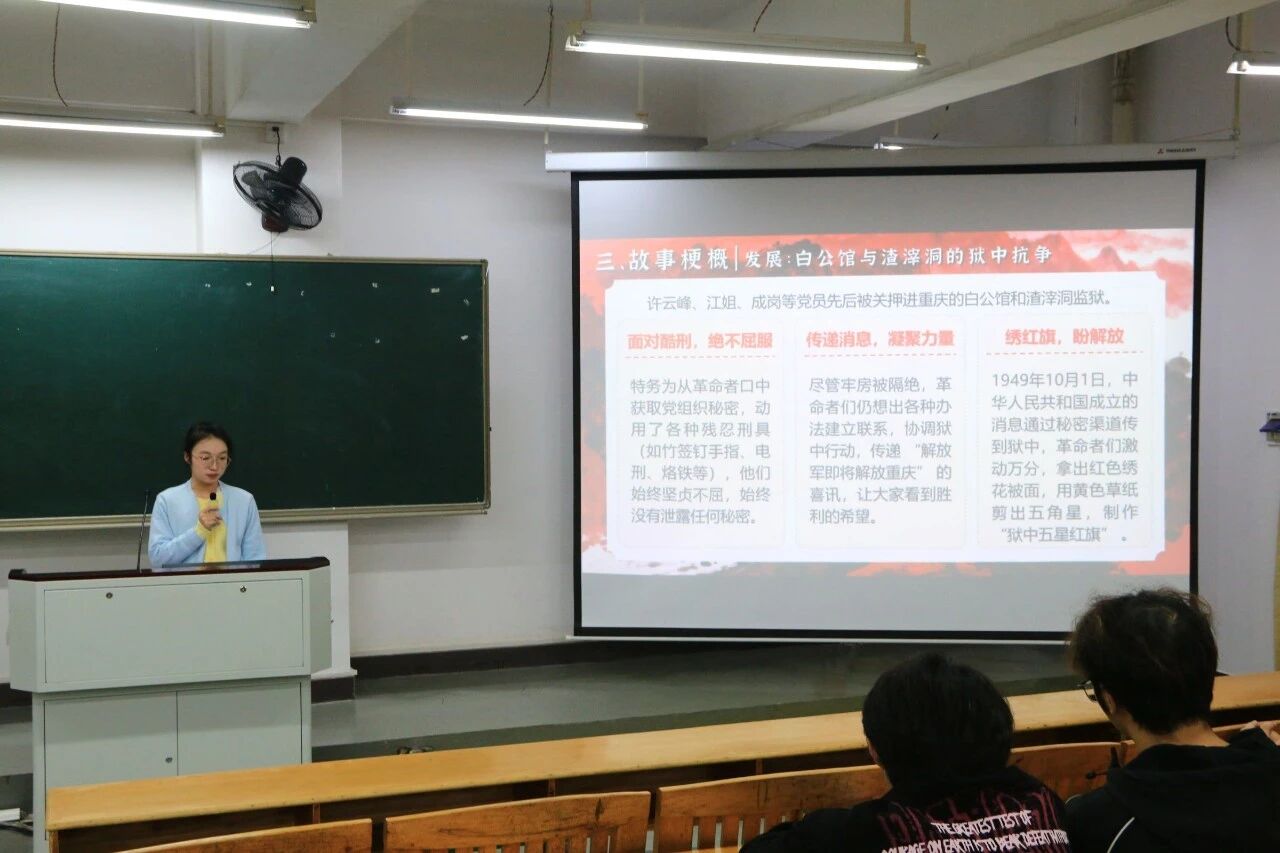 23级口腔3班吴思彤通过分享《红岩》中革命先辈的感人事迹,生动诠释了红医精神中"无私奉献、技术优良"的深刻内涵。一段段饱含深情的讲述,让红色基因在学子心中深深扎根。