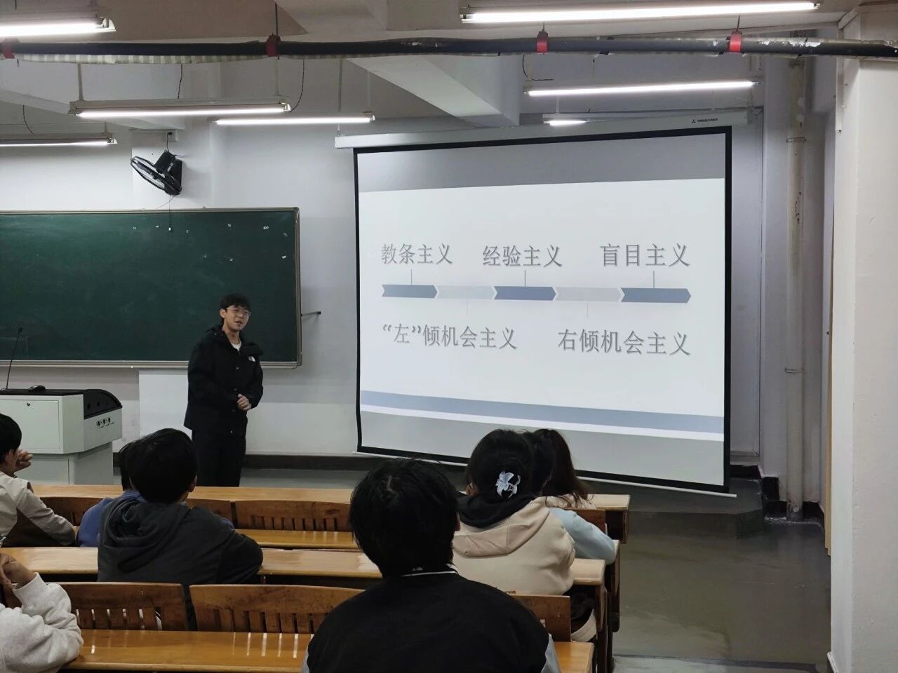 23级口腔2班李旺带领同学们研读《毛泽东选集》,深入剖析教条主义、经验主义、盲目主义等错误思想倾向,重点解读“左”倾机会主义与右倾机会主义的本质区别。通过对比分析,阐释了红医精神中“政治坚定”的理论内涵,强调在医学实践中坚持实事求是、科学决策的重要性,为同学们正确把握专业方向提供了深刻启示。