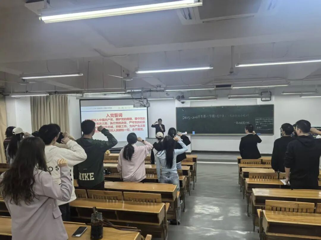 培训以 “理论铸魂、思想赋能” 为核心,开篇即举行庄重的开班仪式。党政办主任、第二党总支书记罗欣恺在仪式上致辞,为学员们阐明培训的意义与要求,凝聚思想共识;随后,全体学员跟唱《我宣誓》,齐声诵读入党誓词,铮铮誓言中传递出对党的忠诚与向往,为培训奠定严肃而坚定的基调。