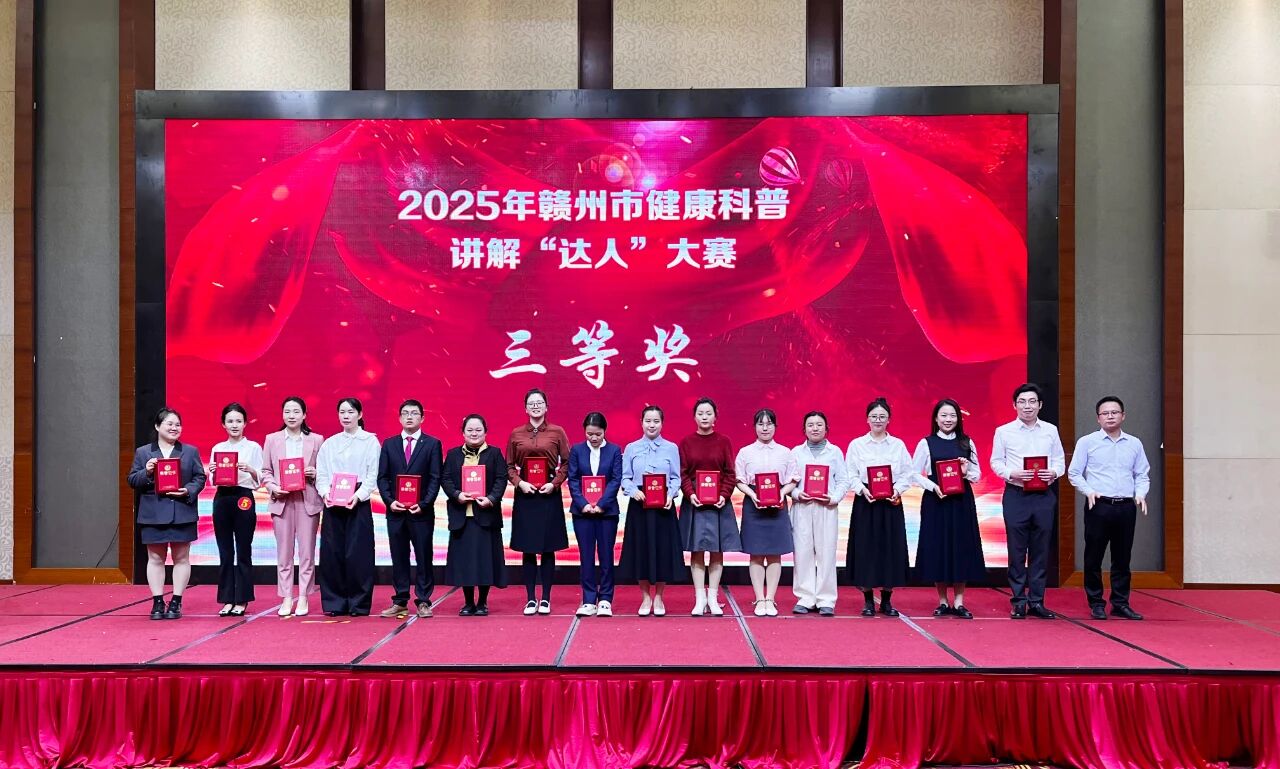 11月12日,2025年赣州市健康科普讲解“达人”大赛圆满落幕,我院口腔种植修复科梅冰馨凭借扎实的专业知识、形象生动的讲解脱颖而出,荣获大赛三等奖。医院荣获优秀组织奖。