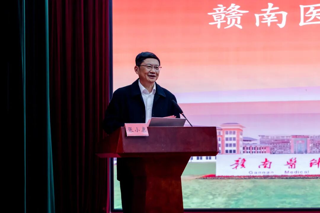 张小康在致辞中代表赣南医科大学,对江西省牙周病学峰会暨第三届赣江口腔医学论坛的召开表示热烈祝贺,向与会专家学者致以诚挚欢迎。他强调,学校建校84年来扎根赣南红土,始终坚守“为党育人、为国育才”初心使命,始终赓续红色基因、传承“政治坚定、技术优良,无私奉献、救死扶伤,艰苦奋斗、勇于开创”的红医精神,培养出11万余名扎根赣鄱大地、服务全国的高素质医学专门人才。他指出,学校高度重视口腔医学的学科建设和口腔医疗服务能力提升,我校附属口腔医院充分发挥口腔医学学科和医疗技术优势,构建起口腔特色专科集群,以红医精神为引领,成为筑牢健康赣州口腔健康防线、守护老区人民口腔健康,助推区域卫生健康高质量发展的重要力量。
