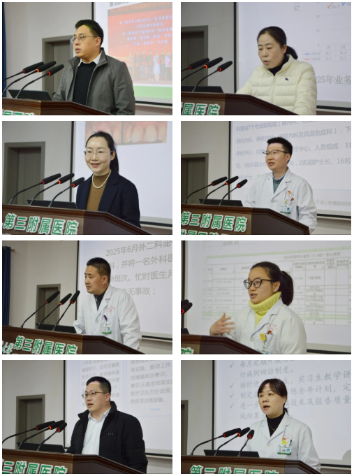 会上,临床、医技各科室主要负责人依次登台,围绕2025年科室思想政治建设、履行工作职责、开展意识形态、思想道德及廉洁自律、存在的问题以及下一步打算等内容,全面总结了过去一年的工作,提出了2026年的发展思路和目标。