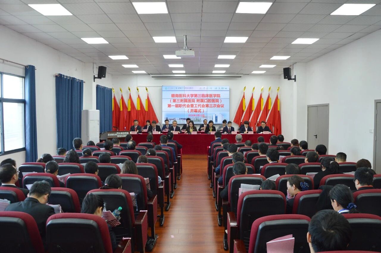 3月11日,在庄严的国歌声中,赣南医科大学第三临床医学院(第三附属医院 附属口腔医院)第一届职代会暨工代会第三次会议在京九院区综合楼学术报告厅拉开帷幕。学校党委常委、副校长盛瑶环,工会主席钟美珠出席开幕会。全院各岗位正式代表、特邀代表、列席代表共90余人齐聚一堂,共商医院高质量发展大计,共绘未来发展宏伟蓝图。