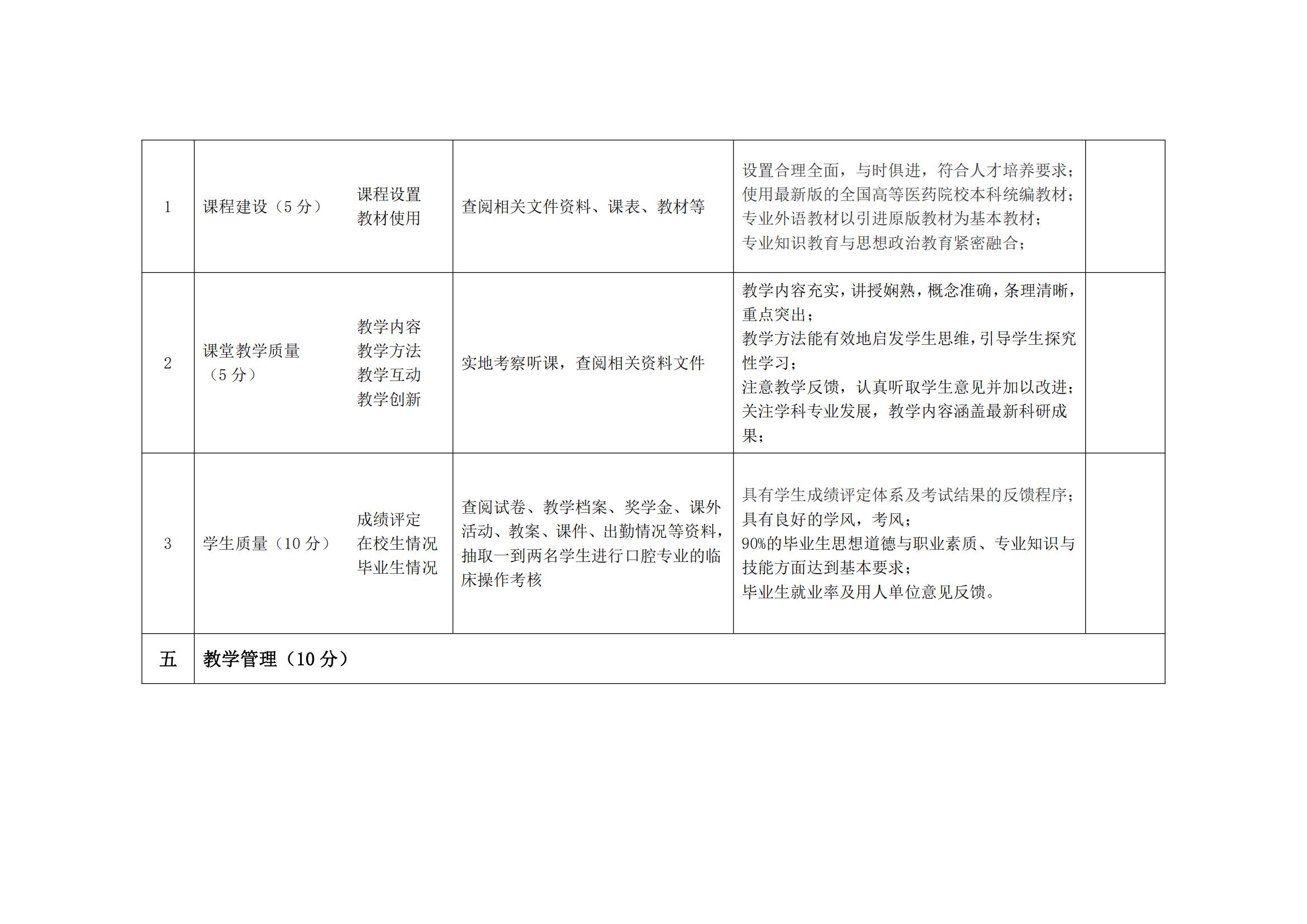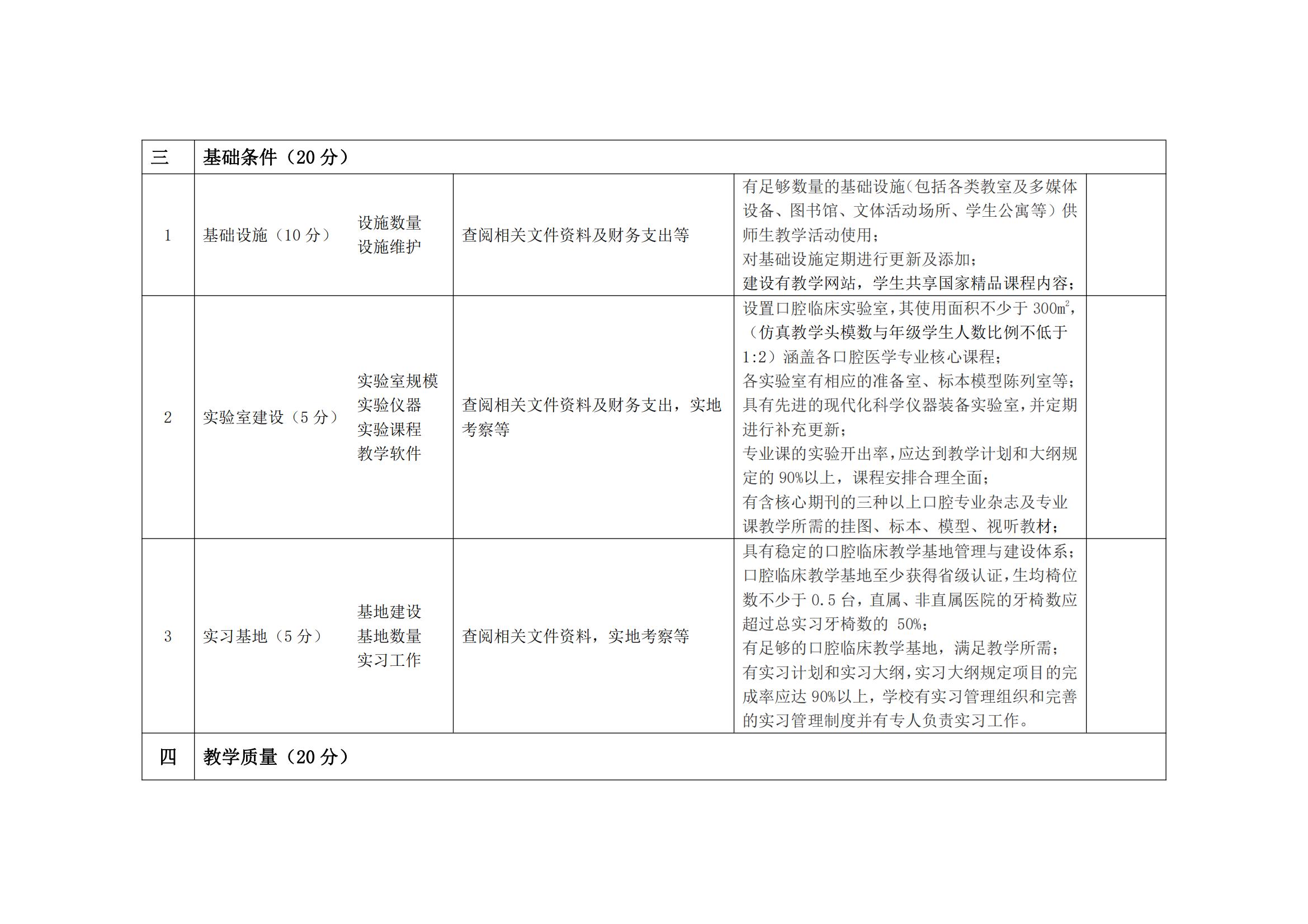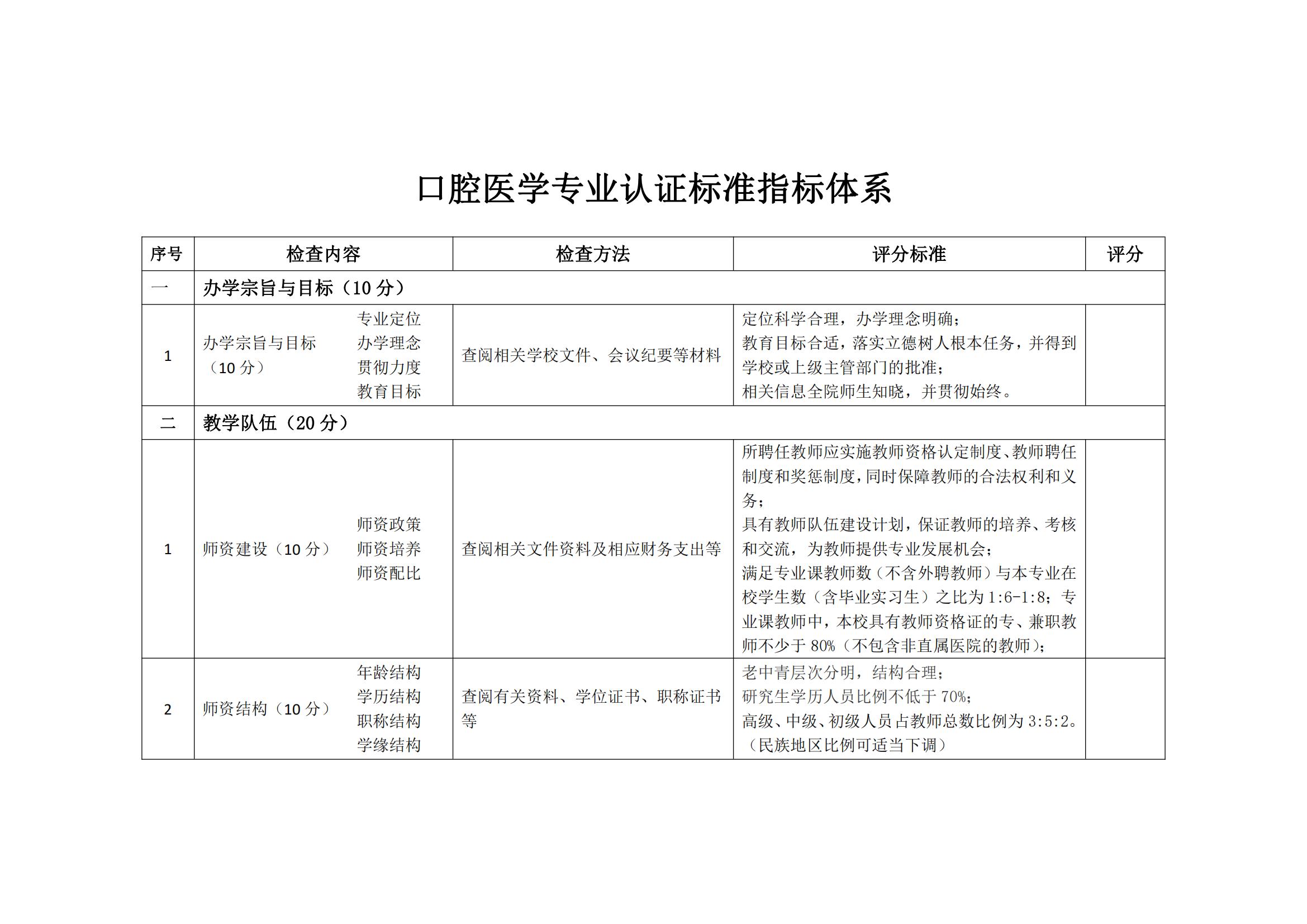 口腔医学专业认证标准指标体系
